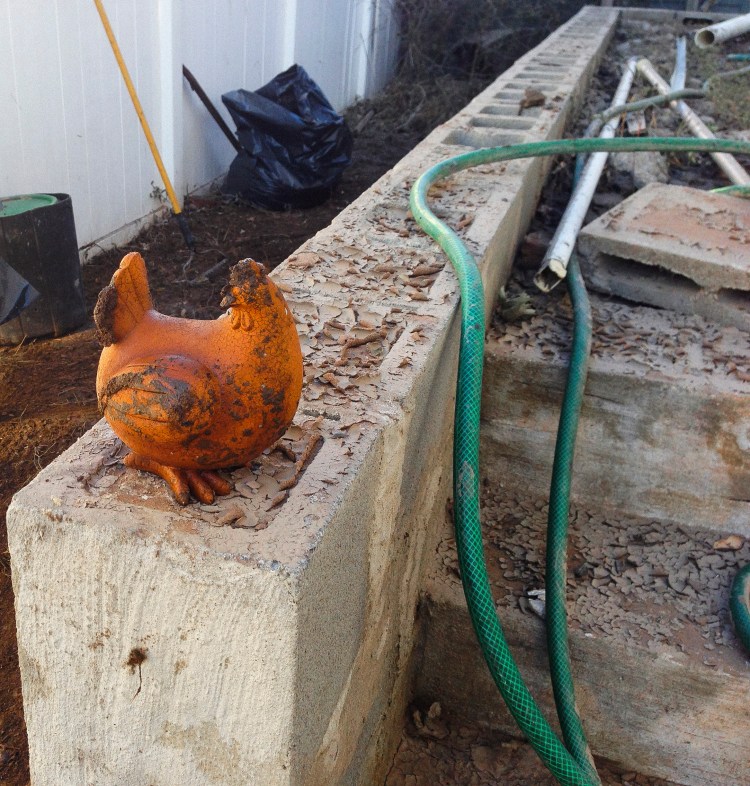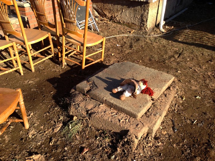 Once we left George and Shirley we wandered down the road to help a nice couple outside, Dario and Maria, they were working on getting Darios mothers backyard back to normal. There was green astro turf, tarps and broken tile embedded in the dirt, so we all dug in to get it done. The only thing that was not broken was this ceramic chicken. It’s crazy it was in one piece.