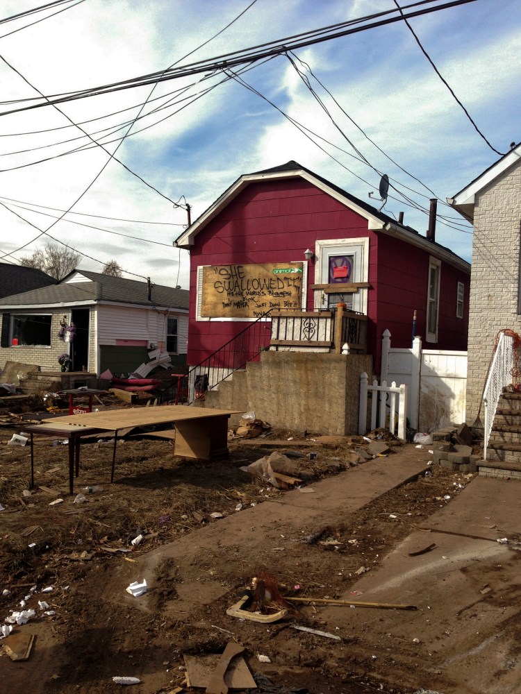 As I was stuck in my apartment during Hurricane Sandy, like everyone else here in New York and New Jersey, I watched the coverage on NY1 news. Being alone, I was a little scared of what would happen, but luckily here in Park Slope, I only had a flicker of lights, wind and rain. So I was thinking, wow this might not be that bad. But in the morning when I woke up, I looked up at the TV to see nothing but destruction and people’s lives destroyed.